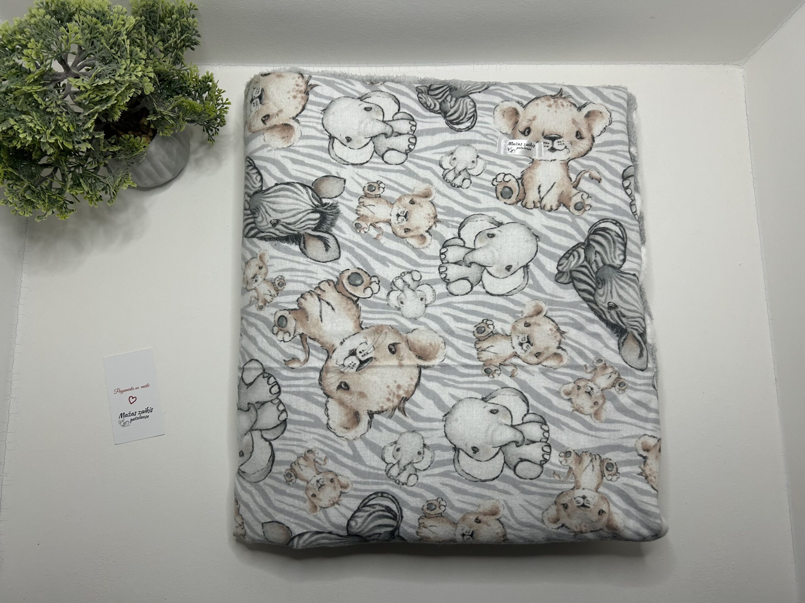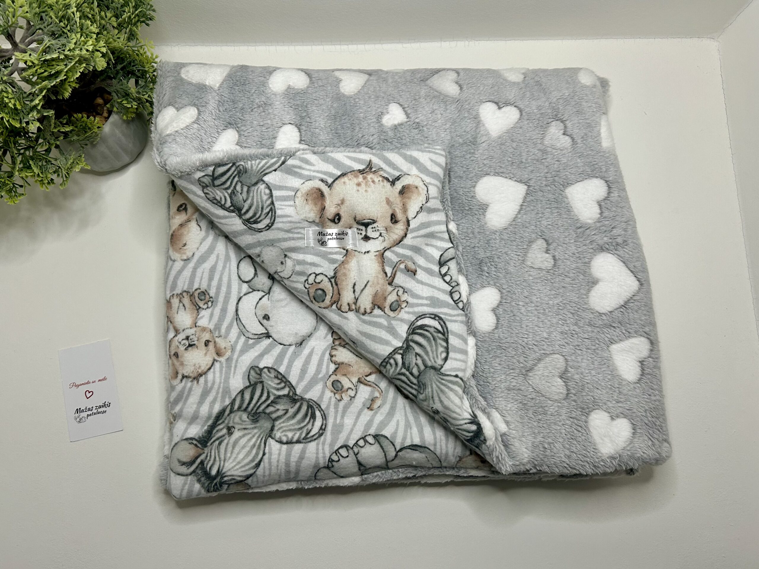 Dvipusis minkštas ir šiltas pledukas. Apšiltintas papildomai. Pleduko išmatavimai: 90x80cm (+-2cm).