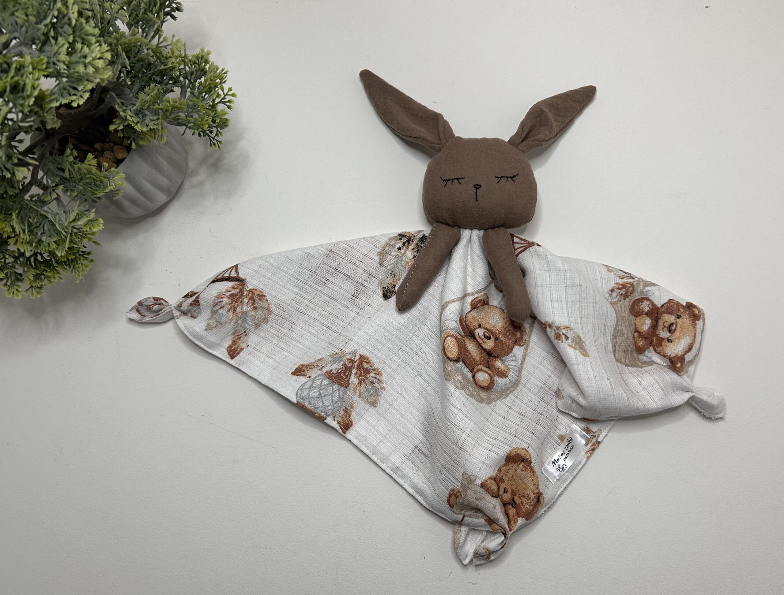 Migdukas pagamintas iš 100% medvilnės muslino, švelnus ir mielas patiems mažiausiems – nuramina ir suteikia saugumo.