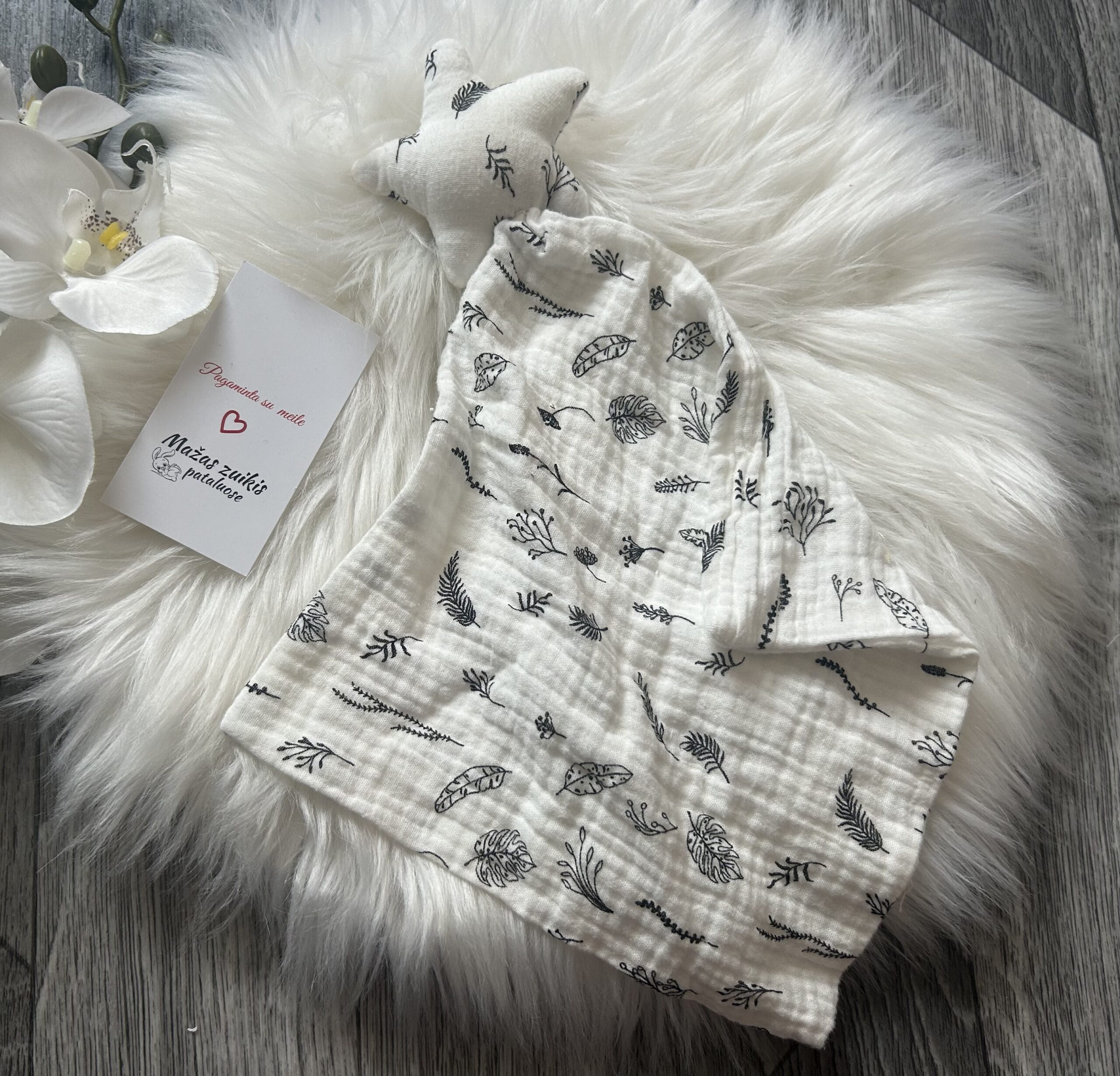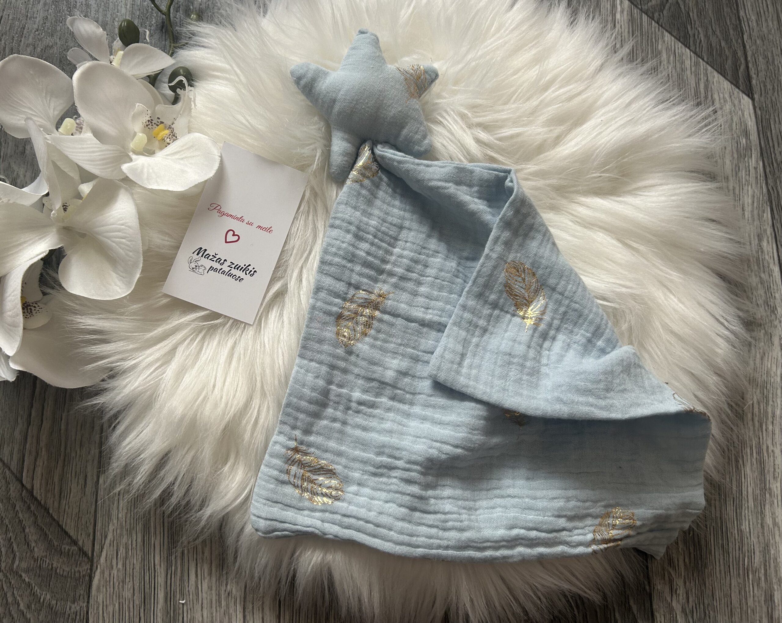 Migdukas ”žvaigždutė” pagamintas iš 100% medvilnės muslino. Mielas ir švelnus patiems mažiausiems priglausti prie veiduko.
