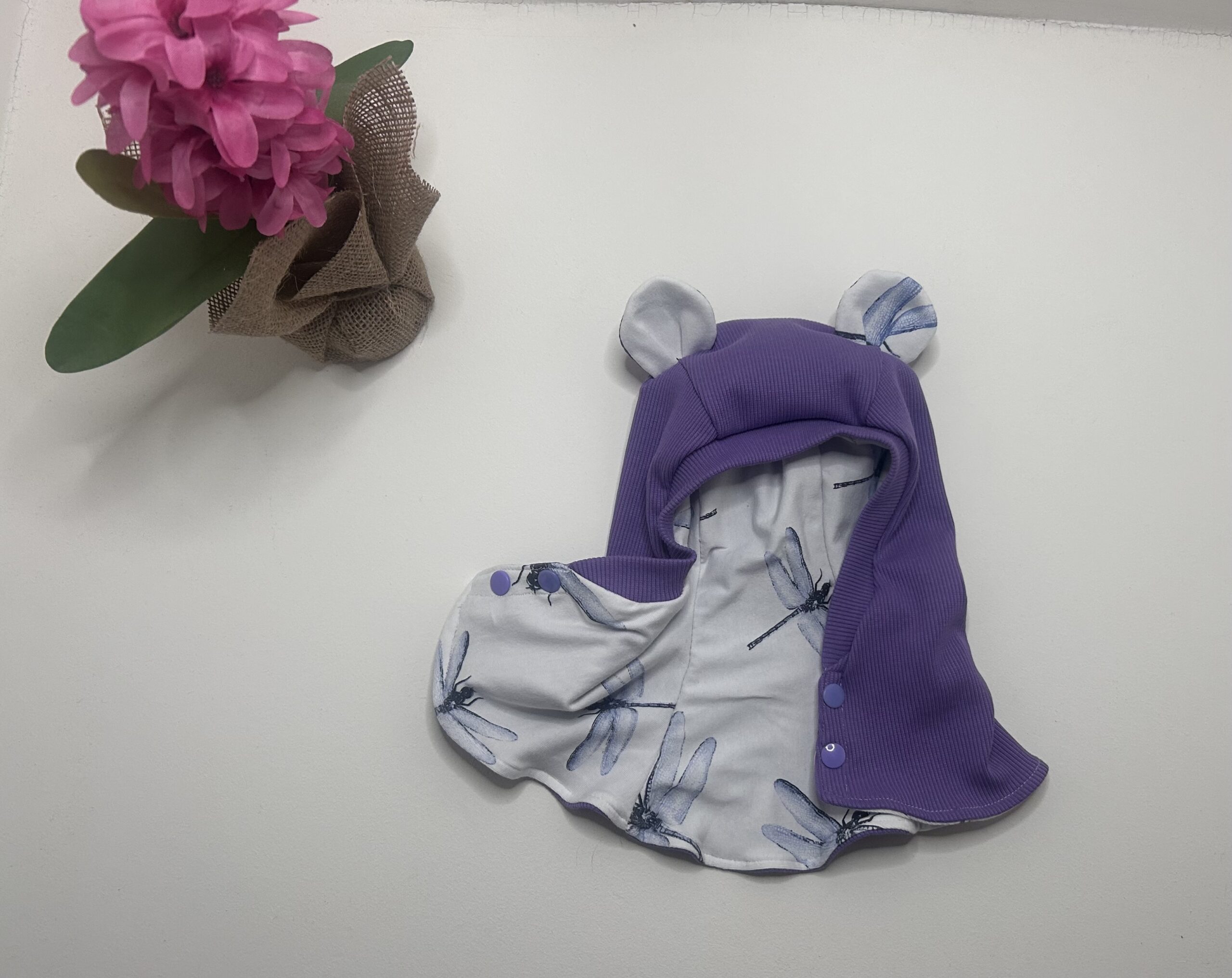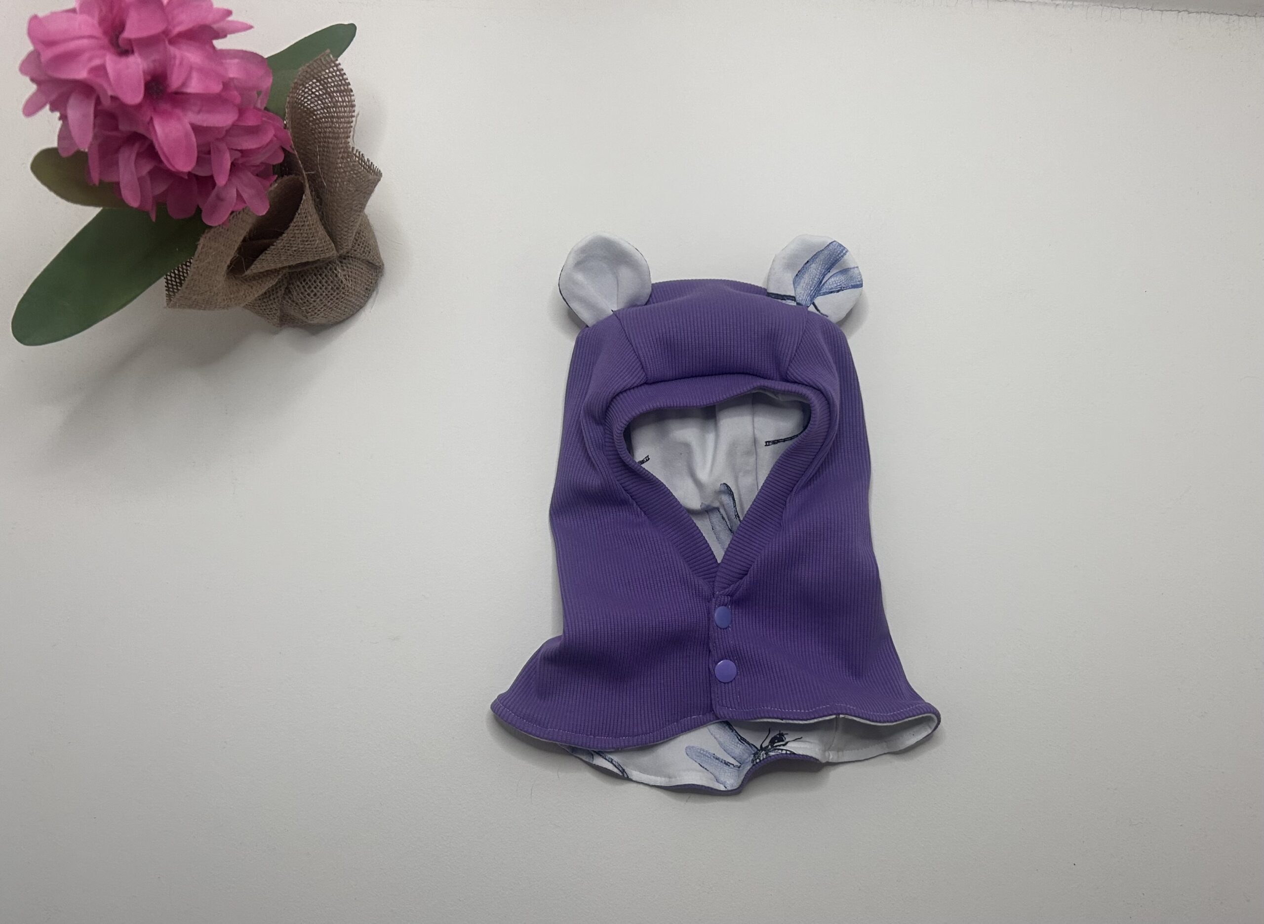 Šalmukas rudeniui/pavasariui pasiūtas iš dviejų sluoksnių audinio. Tinka 44-46cm galvytei (6-12mėn)